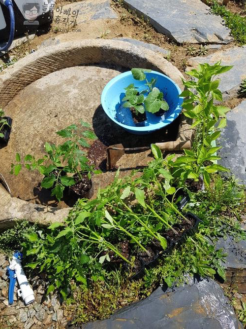 모종을 심은 후 위에만 물을 뿌려주면 모종이 힘들게 뿌리를 내린다고 합니다.