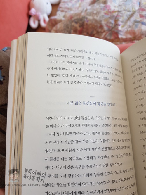2장의 내용이 이 책의 핵심입니다. 3장부터는 실질적인 행동방법, 물건을 줄인 후 변화된 모습에 대한 이야기여서 2장 내용만 따로 떼어내도 온전한 책 한 권이 될 거 같네요.