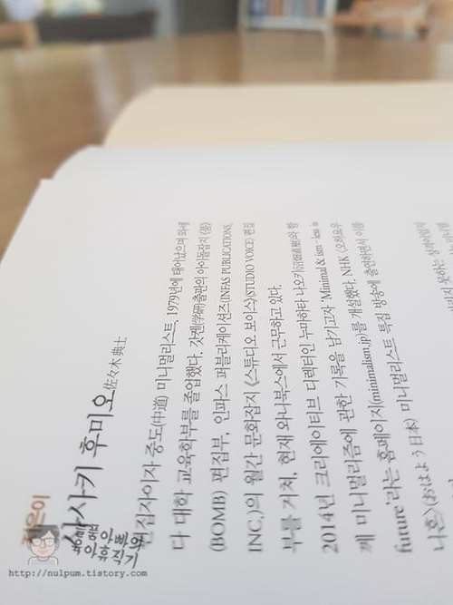 사사키 후미오라는 일본인이 저자인데 미니멀리즘에 대한 기록을 남기다가 홈페이지도 생기고 방송에도 출연을 하면서 이름을 알리게 되었다고 합니다.