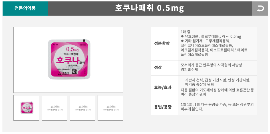 검색을 해보니 여기에 쓰인 주 성분인 '툴로부테롤'에 대해서 부작용도 좀 있는 것 같고