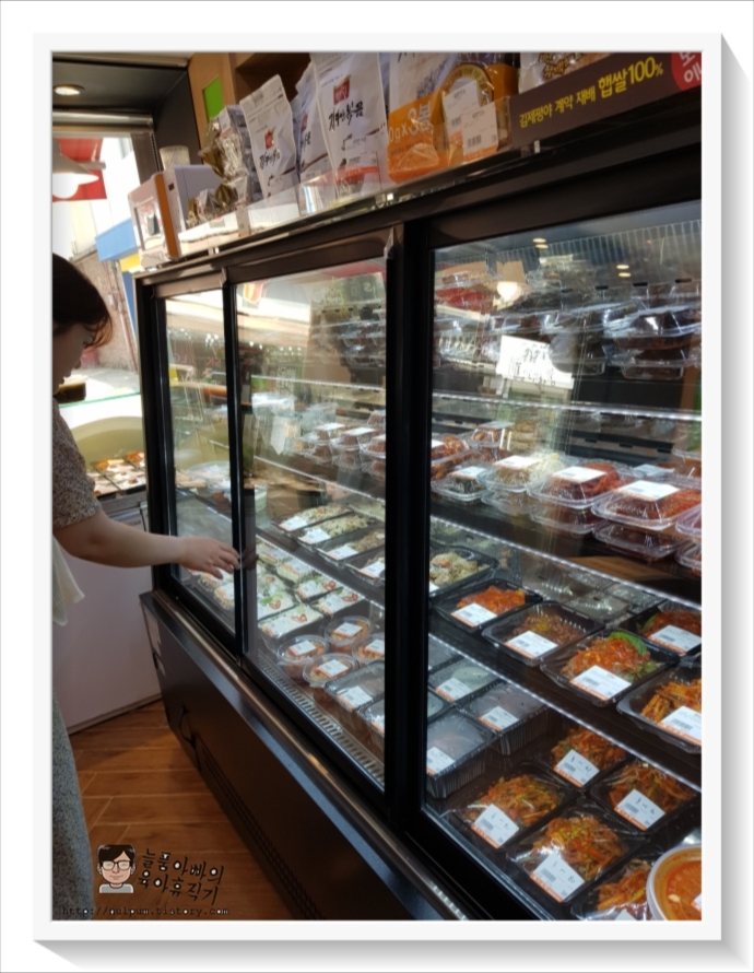 그런데 여기는 그 반찬가게보다 뭔가 더 위생적인 실내에 반찬도 깔끔하게 포장되어 있지 뭐예요.