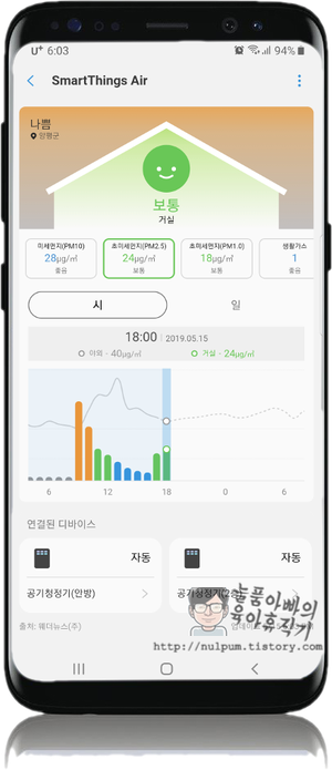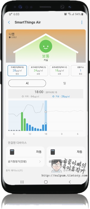 공기질 변화 트렌드 정보가 얼마 기간 동안 저장 유지되는지는 아직 모르지만 그동안 사용하지 않았던 '스마트싱스'앱이 이젠 좀 쓸만해진 것 같습니다.