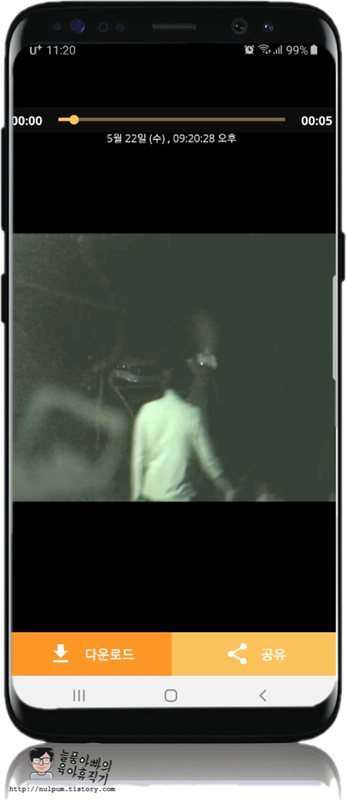 움직임 감지 설정 후 저녁에 외출하는 가족의 모습이 저장되었네요.^^