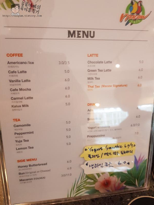 커피와 마카롱 먹은 기억보다 조그마한 앵무새 동물원에 온 것 같은 '마카우' 카페