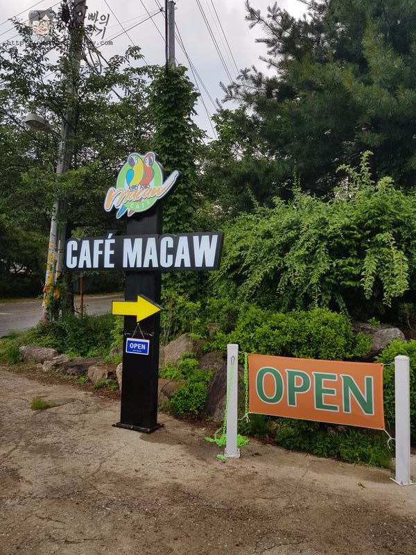 옥천면 용천리에는 앵무새를 만날 수 있는 '마카우' 카페가 있습니다.