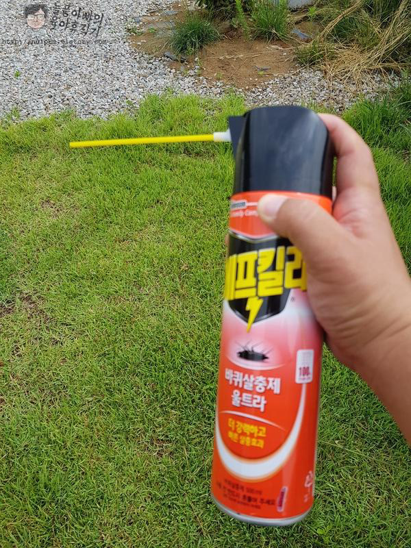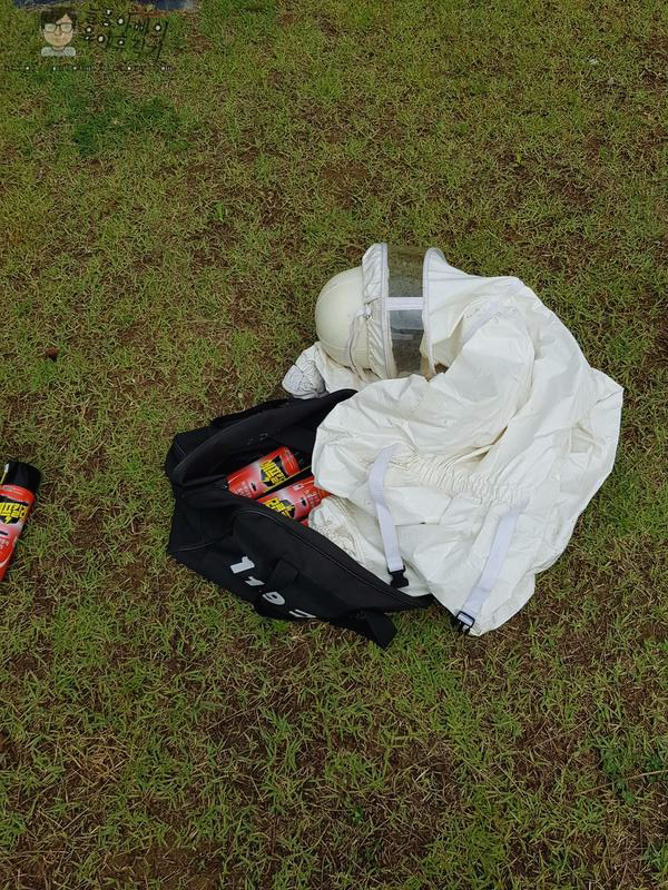 혹시 성난 말벌이 공격할 수 있으니 에프킬라를 들고 쏘라고 한 개 주십니다. ㅋㅋ