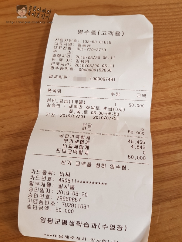 양평군 평생학습센터 수영강습(초급) 접수했어요