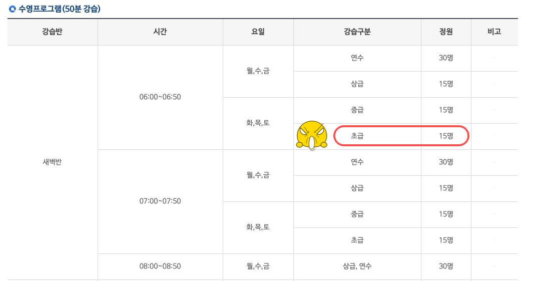 주위 분들께 물어보니 마감되어서 등록을 못하면 대부분의 사람들이 '자유수영' 등록을 한다고 합니다.