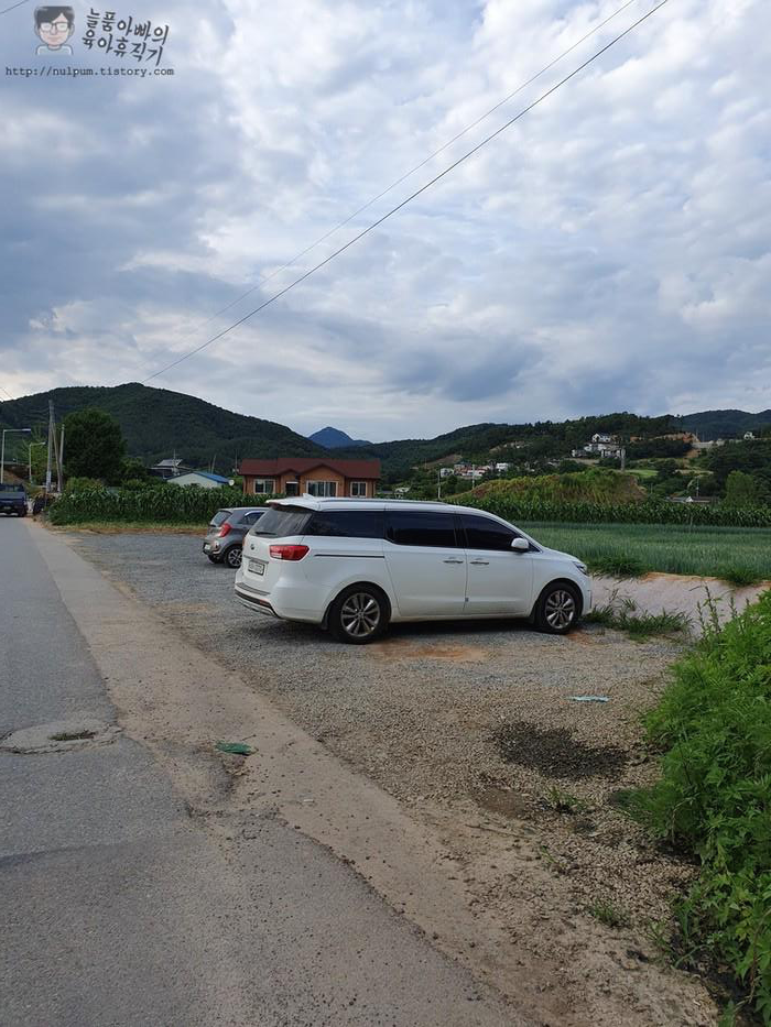 음식점 앞은 현수막이 있는 공간, 맞은편 도로의 공터, 식당 옆... 주차할 공간이 많았습니다.