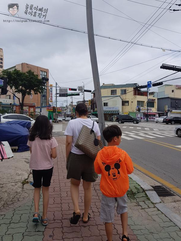 아이들과 먼저 테이블에 앉아 아내가 닭강정을 들오 올라오기를 기다렸어요.