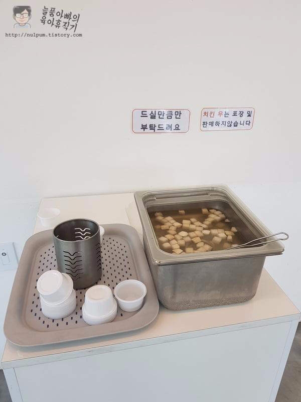 치킨무를 덜어 먹을 수 있게 해 놓았는데 아무나 쉽게 퍼갈 수 있게 되어 있어서
