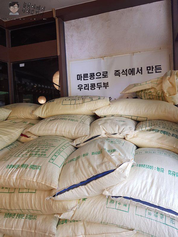 한옥 스타일의 인테리어와 국내산 콩으로 직접 두부를 만들어 사용하는 점이 이곳의 특징이에요.