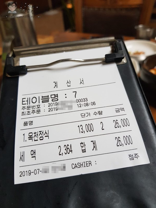 메뉴는 예전에는 명칭이 '해물순두부 정식'이었던 거 같은데 지금은 그냥 '옥천 정식'이네요.