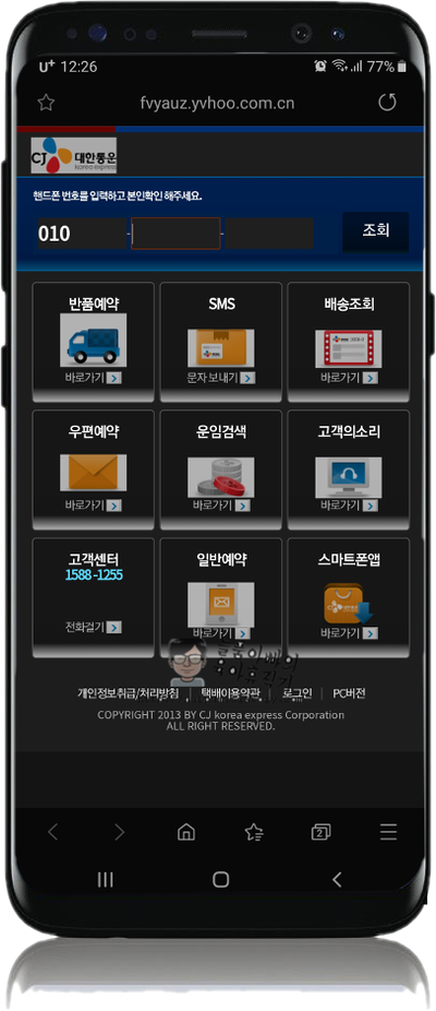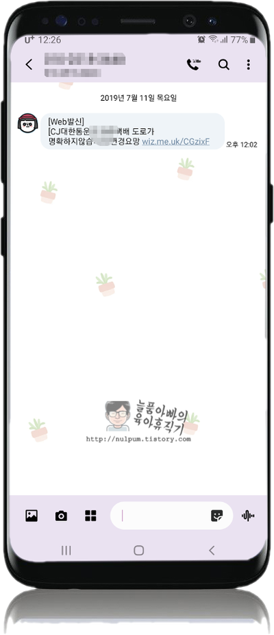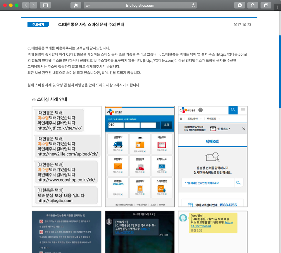이미 수년 전에 CJ대한통운에서 스미싱 문자를 주의하라는 공지가 있었네요.. ㅠㅠ