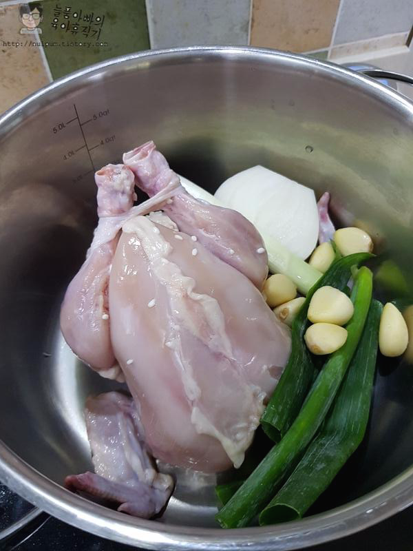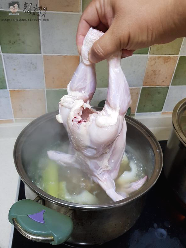처음에 한꺼번에 끓이는 실수?를 할 뻔하다가 다시 닭만 건져내고 국물을 먼저 우려낸 후 닭을 넣었어요.