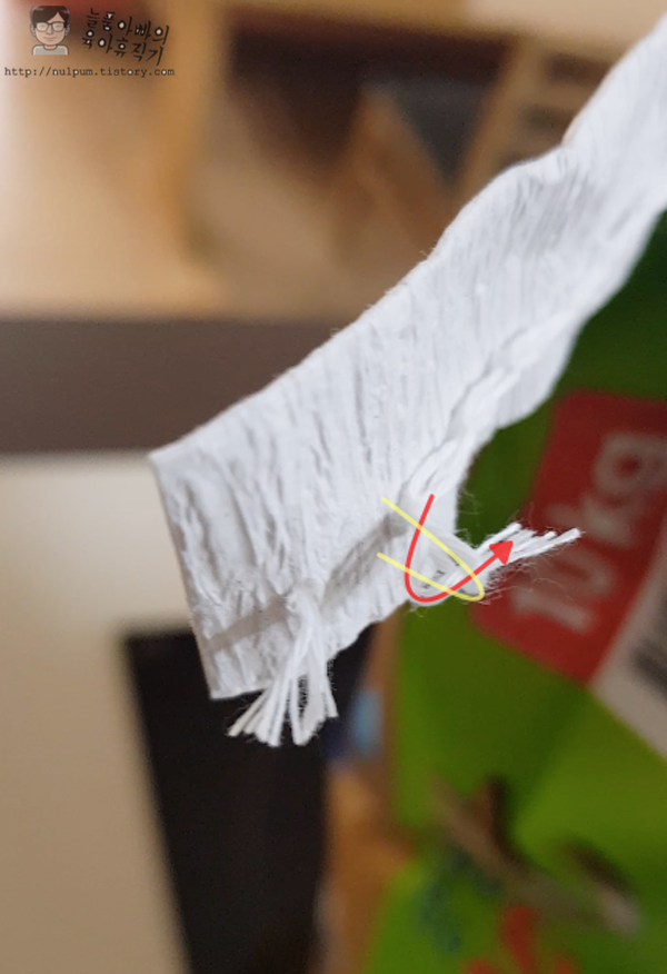 그런데 가위로 쌀포대 종이를 자르면 종이가루가 생겨서 쌀에 들어갈 수도 있다고 하네요.