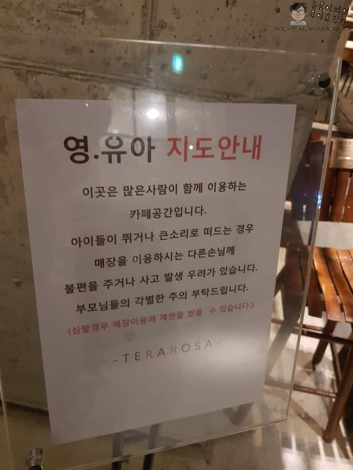 뜨아!! 아이 다섯 데리고 들어가는데 붙어 있는 '영유아 지도 안내'