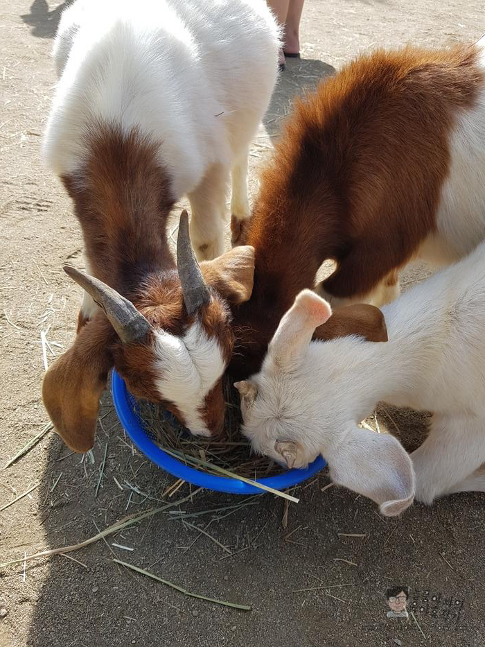 아기 염소, 미니피그, 토끼 등 작은 동물들을 만질 수 있고 먹이도 주는 곳인데 아이들이 정말 좋아라~ 합니다.
