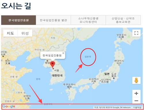 한국임업진흥원의 경우 구글의 지도 서비스를 홈페이지에 삽입해서 사용했더군요. 지금은 수정되었다고 합니다.