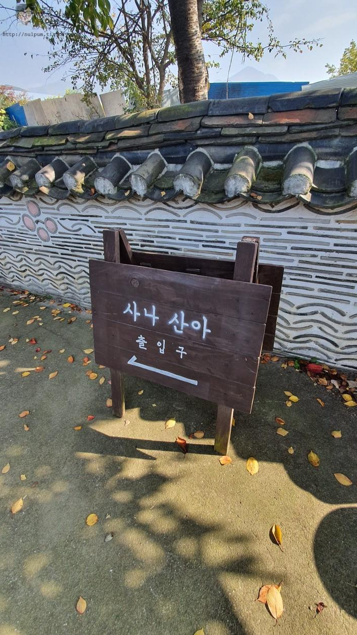 '사나산아 출입구' 안내표지를 따라 골목으로 들어가면 끄트머리에 입구가 있고요