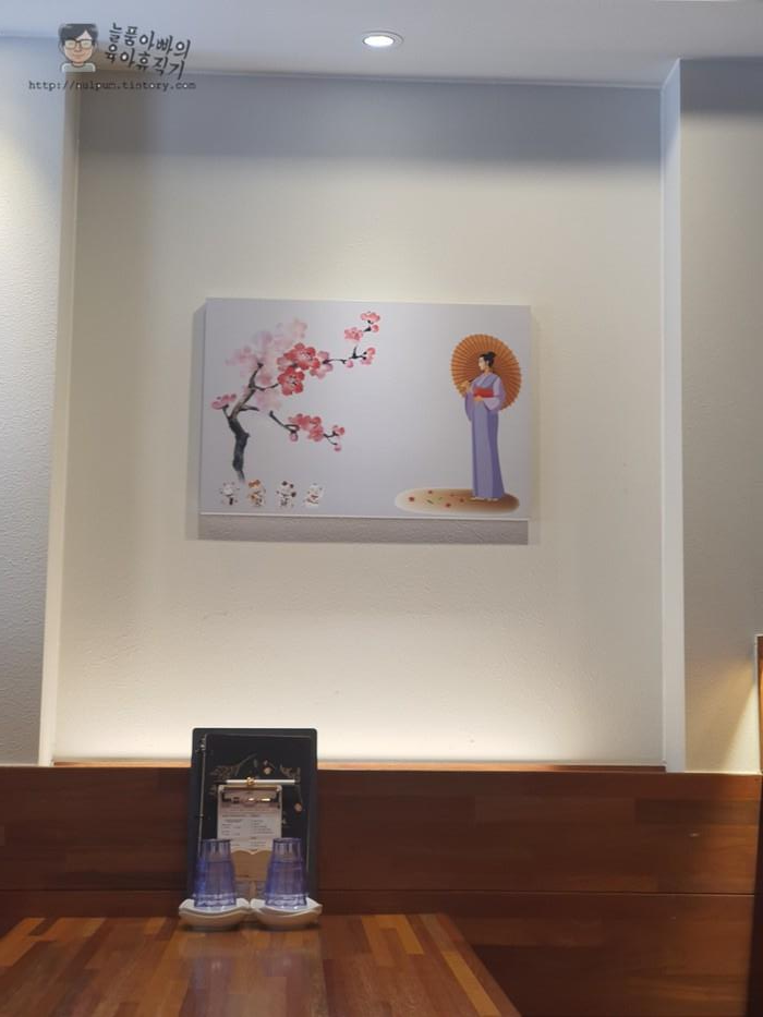 맨 위엔 고추냉이 찔끔. 입을 크게 벌려서 먹어야겠더라고요 ㅎㅎㅎ