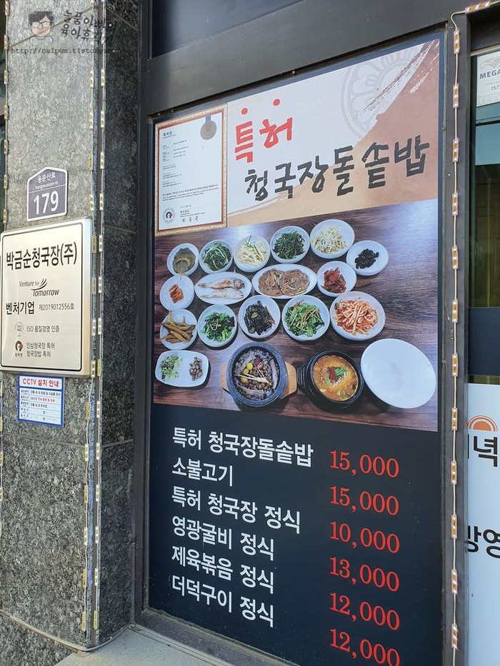 돌솥밥이 특허? 받은 것이니 우리가 주문한 청국장 정식은 특허랑 관계없는 걸로...