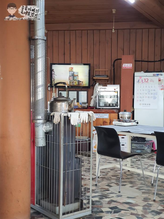 난로 위의 주전자에 뜨거운 차가 있어서 원하는 만큼 컵에 따라 마시니 좋았어요.