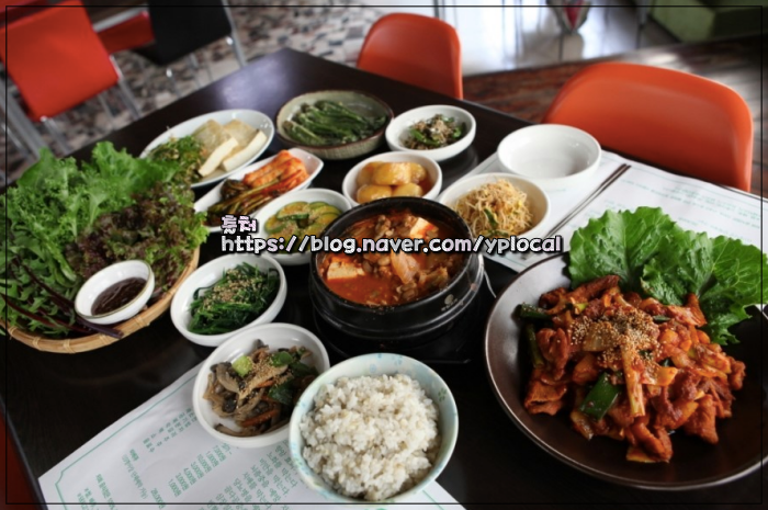 한참을 기다린 후에야 어떤 메뉴를 주문했었는지 다시 물어보시고 고추장 돼지불고기와 쌈을 가져다주셨어요.