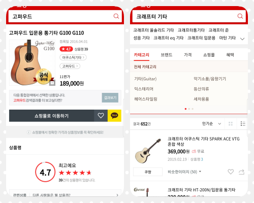 강사님은 입문용 기타로 고퍼우드와 크래프터 브랜드를 추천해 주셨어요