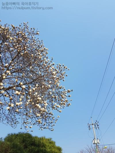 그리고 역시 봄을 알리는 목련 나무가 꽃을 피우고 있는 것...