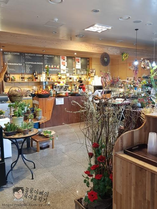 무엇보다도 넓은 실내와 다육이, 각종화분과 소품으로 꾸며놓은 카페 '하바별시'는 조용히 차 마시며 시간 보내기 좋습니다.