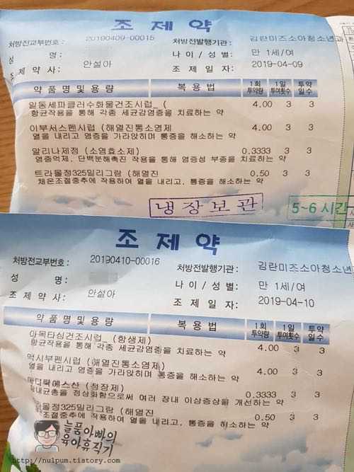 어제랑 해열제도 달라졌고, 다른 약도 달라진 거 같습니다.
