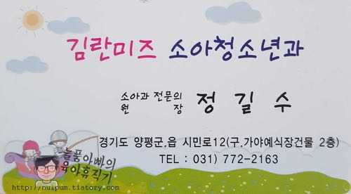 양평에서 사시는 분들은 대부분 소아청소년과 (지금은 소아과라고 안 하지요?)는 '김란미즈' , '이용운소아과의원' 으로 다니지 싶어요.