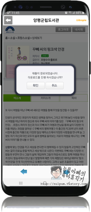 책을 다운로드하면 교보 도서관 앱을 통해서 책을 읽게 되어 있어요.