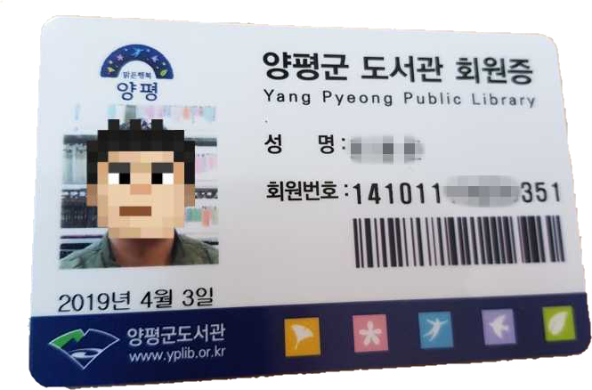 이번에 양평 군립도서관에 회원가입을 하여 도서관 대출증을 발급받았습니다.