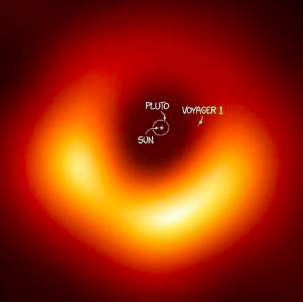제가 인스타그램에서 Follow 하는 'astro_iram' 이 이번에 공개된 블랙홀 사진과 태양계 크기를 비교한 사진을 올려서 공유합니다.