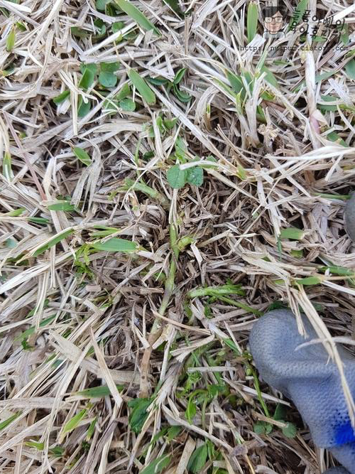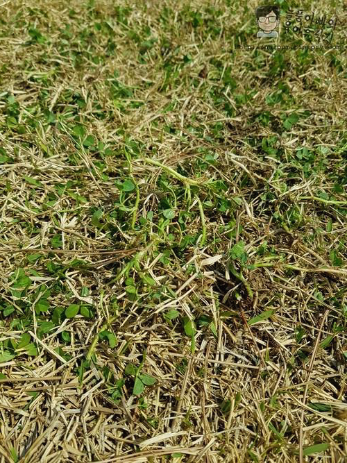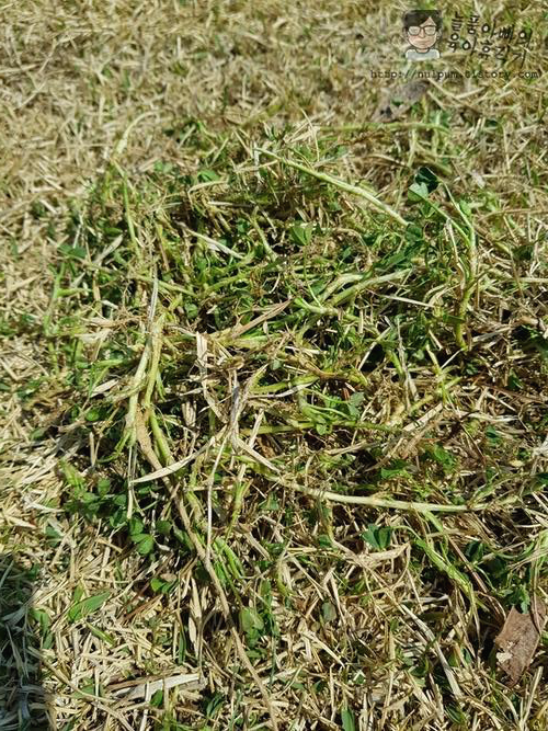 그래서 저는 호미로 잔디밭 윗부분을 샤샤삭~ 긁습니다. 그러면 중간중간 클로버 줄기가 뜯어져서 위로 올라오거든요.