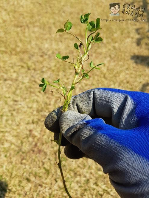 잔디에게 미안한 마음으로 살포시 내려놓고 다시 공격적으로 클로버를 제거했습니다.
